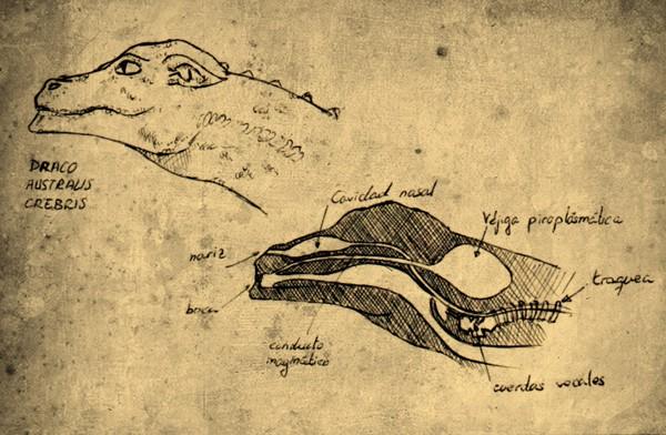 1. Woah. Buen trabajo. No sé si has llegado a leer alguna vez «La caverna del Dragón» un libro-juego de la serie «La búsqueda del grial». Allí daban una explicación desde un punto de vista distinto. Aquella era menos creíble pero lo curioso es que ambas se acercan al fenómeno desde lo biologicista en lugar de desde la mística, pero ambas proponen soluciones muy diferentes. Lo cual tiene lógica y consistencia desde el punto de vista de la la biología, desde la que se ha observado como funciones similares (el ojo, por ejemplo) ha evolucionado varias veces de forma separada en distintos tipos de animales. Es como si tu dragón y el otro que menciono hubieran desarrollado la misma necesidad (expulsar fuego) en mundos distintos y la hubieran llegado a desarrollar por vías diferentes.